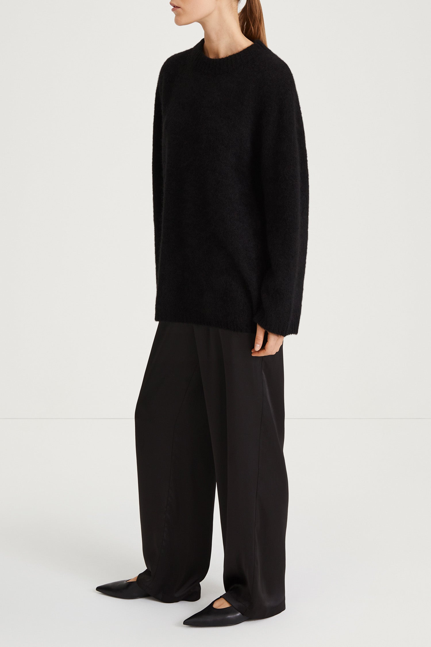 Stay warm and chic with the Noemi Plain Sweater. This loose, straight-cut sweater is crafted from a luxurious mohair blend. The round neckline adds a classic touch to this versatile piece, perfect for layering or wearing on its own.