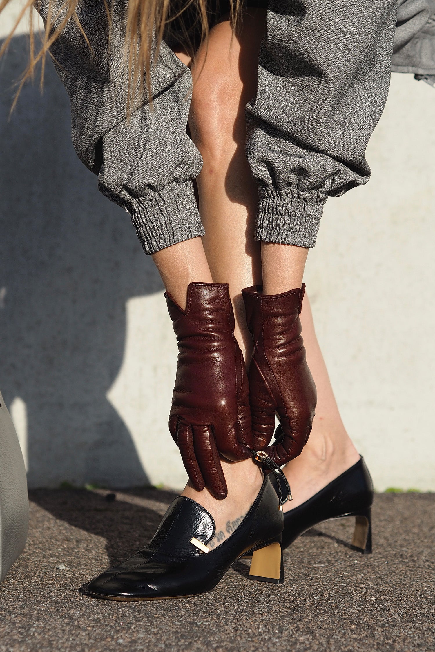 handsome minimalistic scandinavian-timeless classics gloves leather brown long sleve