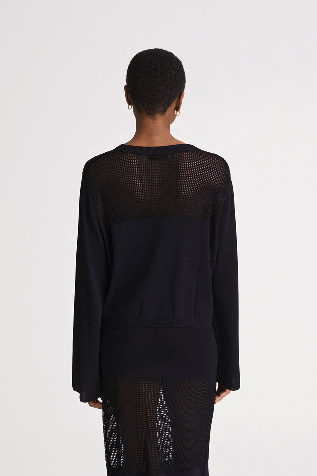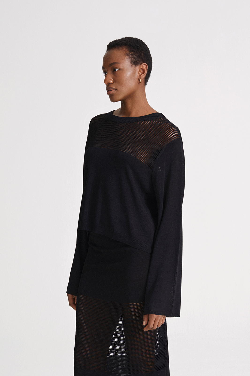 Odin trousers beach knitted mesh see trough straight full length black stylein front image