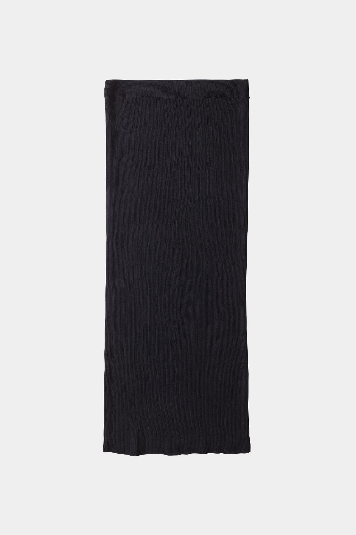 Pomerola Skirt is an ankle-length knitted skirt crafted from a fine ribbed rayon blend. Designed with a straight silhouette, it features a double-folded waistband with an elastic interior for a comfortable yet polished fit.